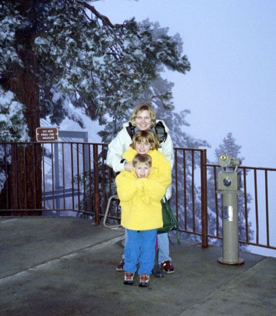 Here is Cathy, Jess and Ben on top of Mount San Jacinto. Mount San Jacinto sits just behind Palm Springs. In Palm Springs at around 300 feet it was about 72 degrees. Up on Mount San Jacinto, at over 8,000 feet, the temperature was about 28 degrees!! The kids enjoyed actually being able to touch clouds. Once the clouds passed, the view was spectacular